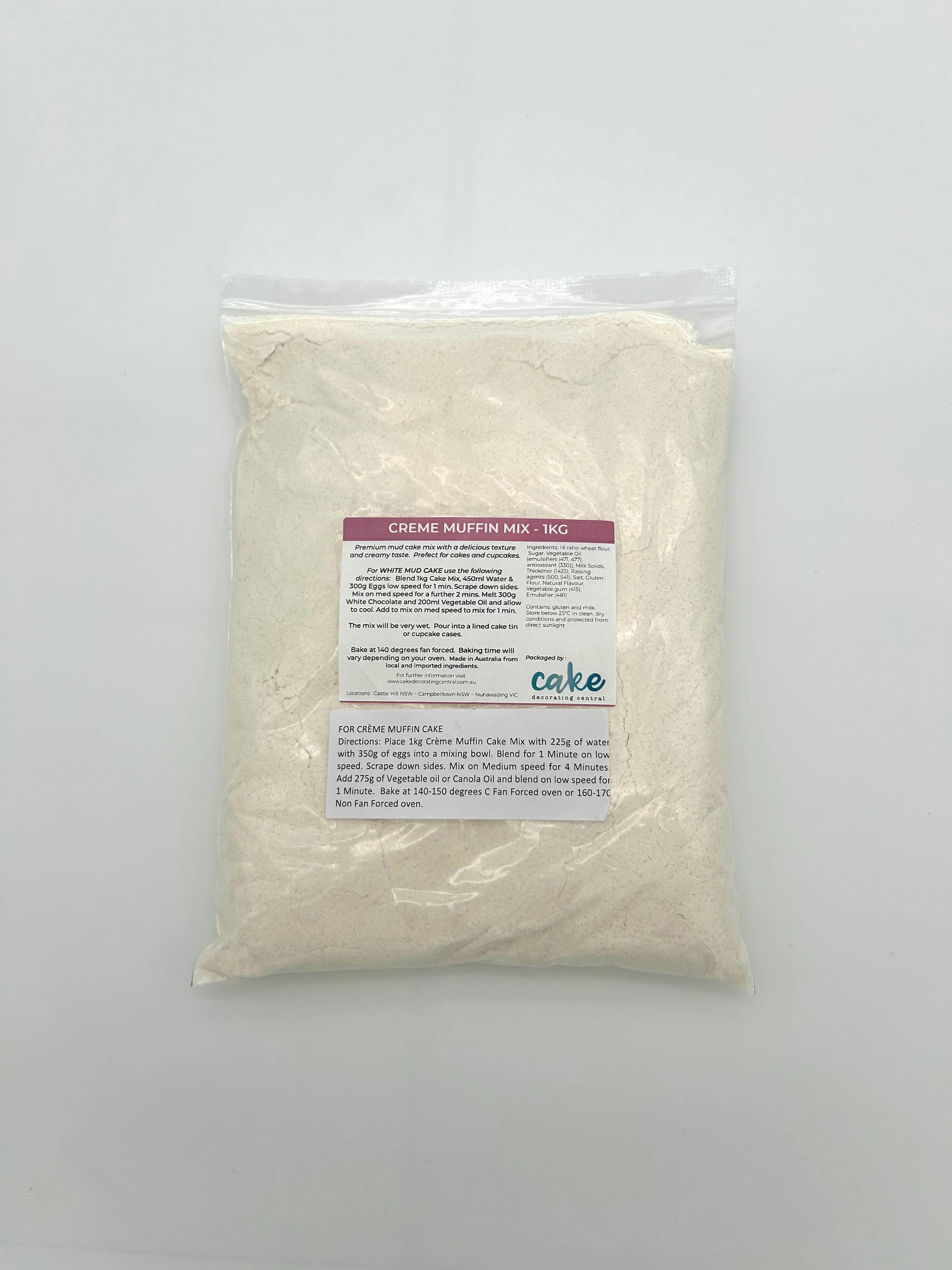 - 1kg of Creme Muffin makes a 9 inch round x 4 inch high or 10 inch round x 3 inch high