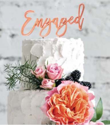 Engaged Rose Gold Metal Cake Topper